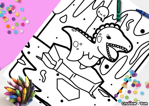 Printable Cute T Rex Coloring Page For Kids Kawaii T Rex Etsy